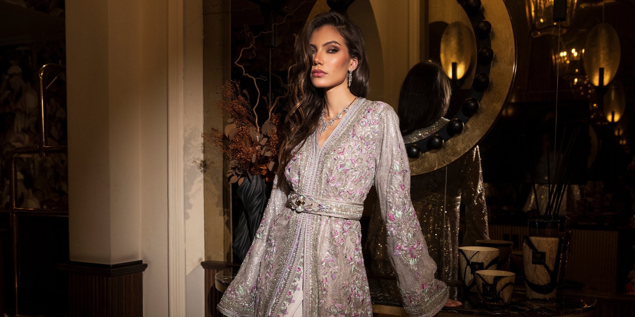 Caftan Marocain Swarovski Beige Ivoire